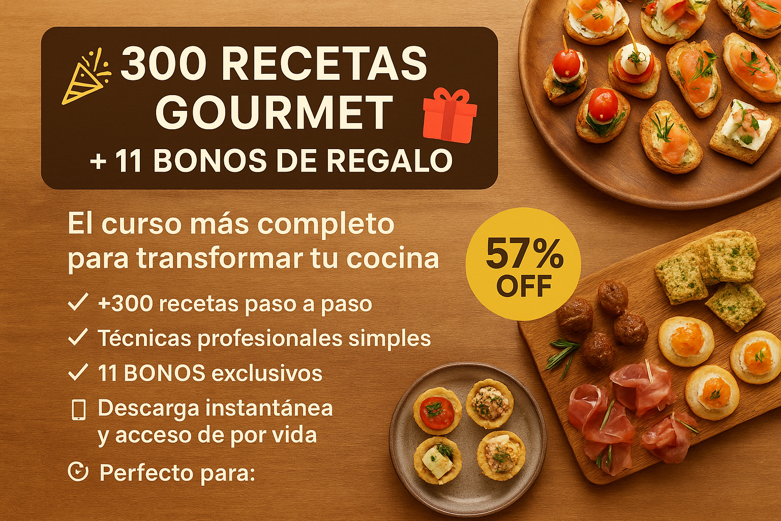 Combo Gourmet 14x1 - +300 Recetas + 11 BONOS de Regalo 🎁 - 57% OFF