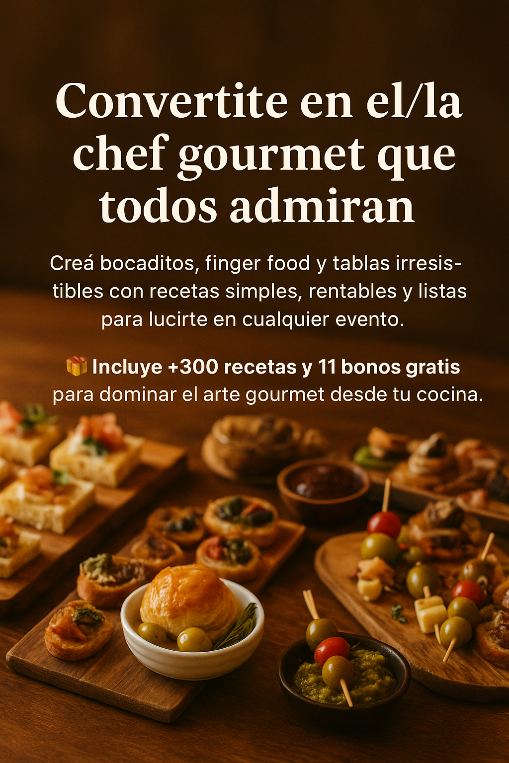 Encontrarás una amplia variedad: bocaditos gourmet, patés, mousses, recetas internacionales, maridajes, y opciones express para sorprender en eventos, reuniones o simplemente disfrutar en casa.